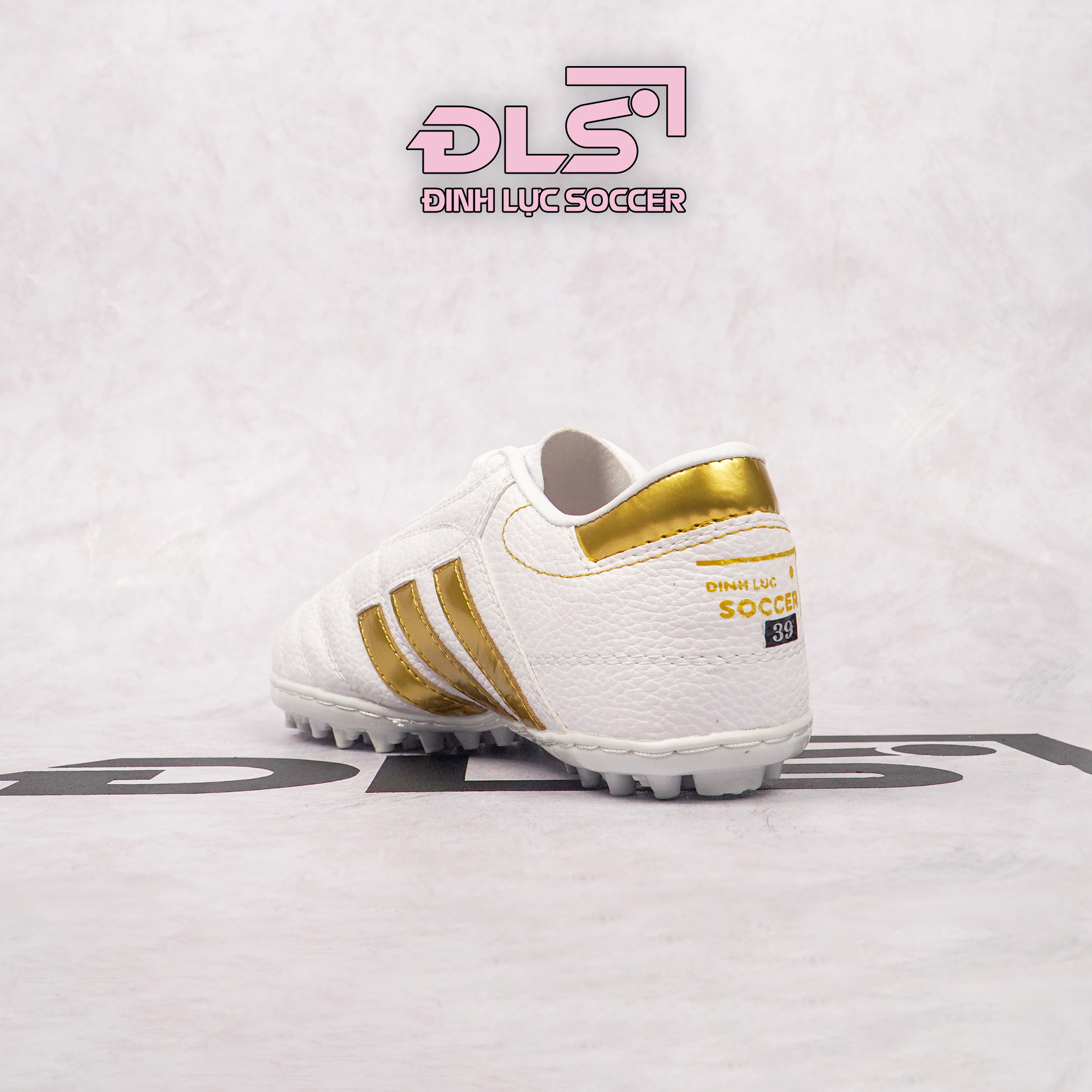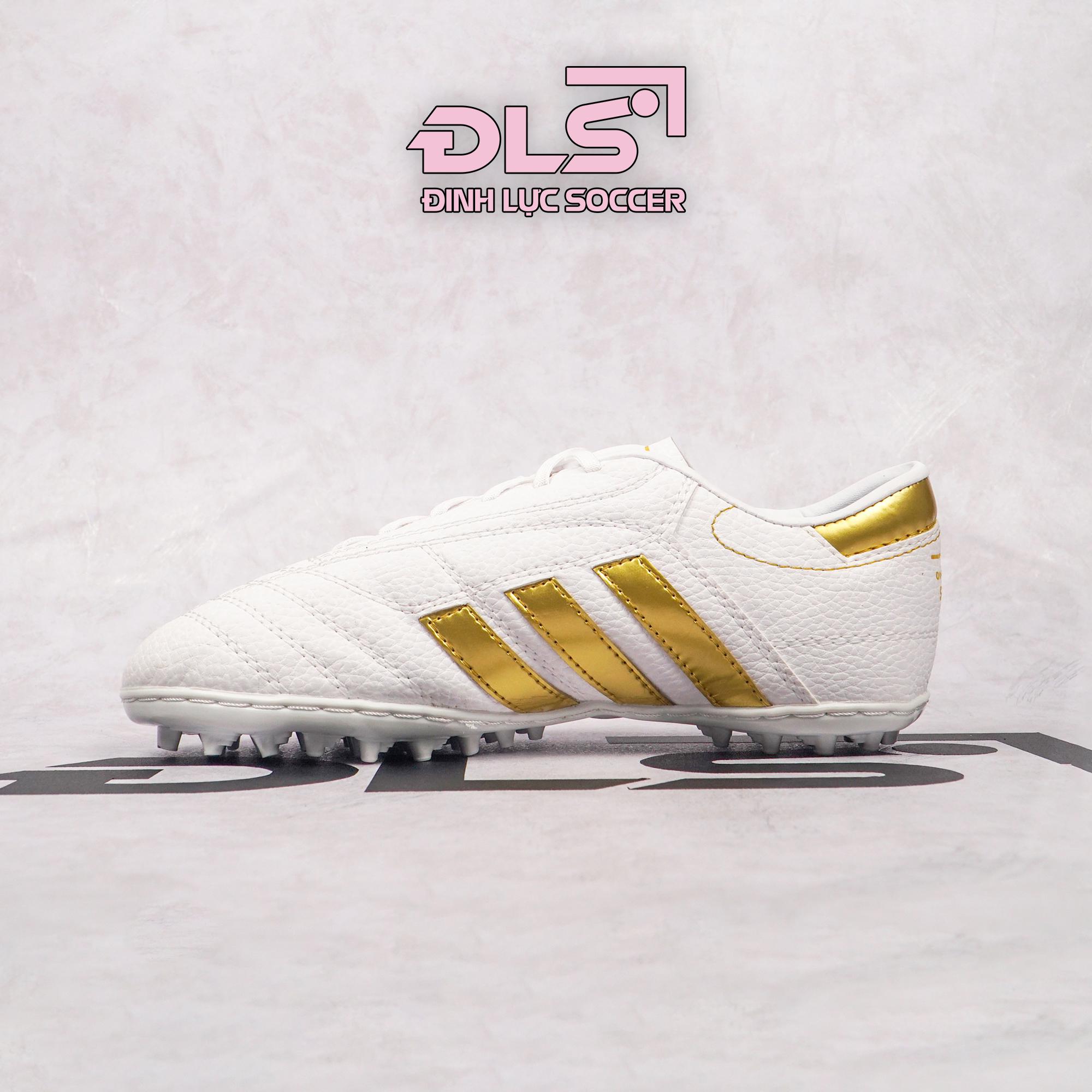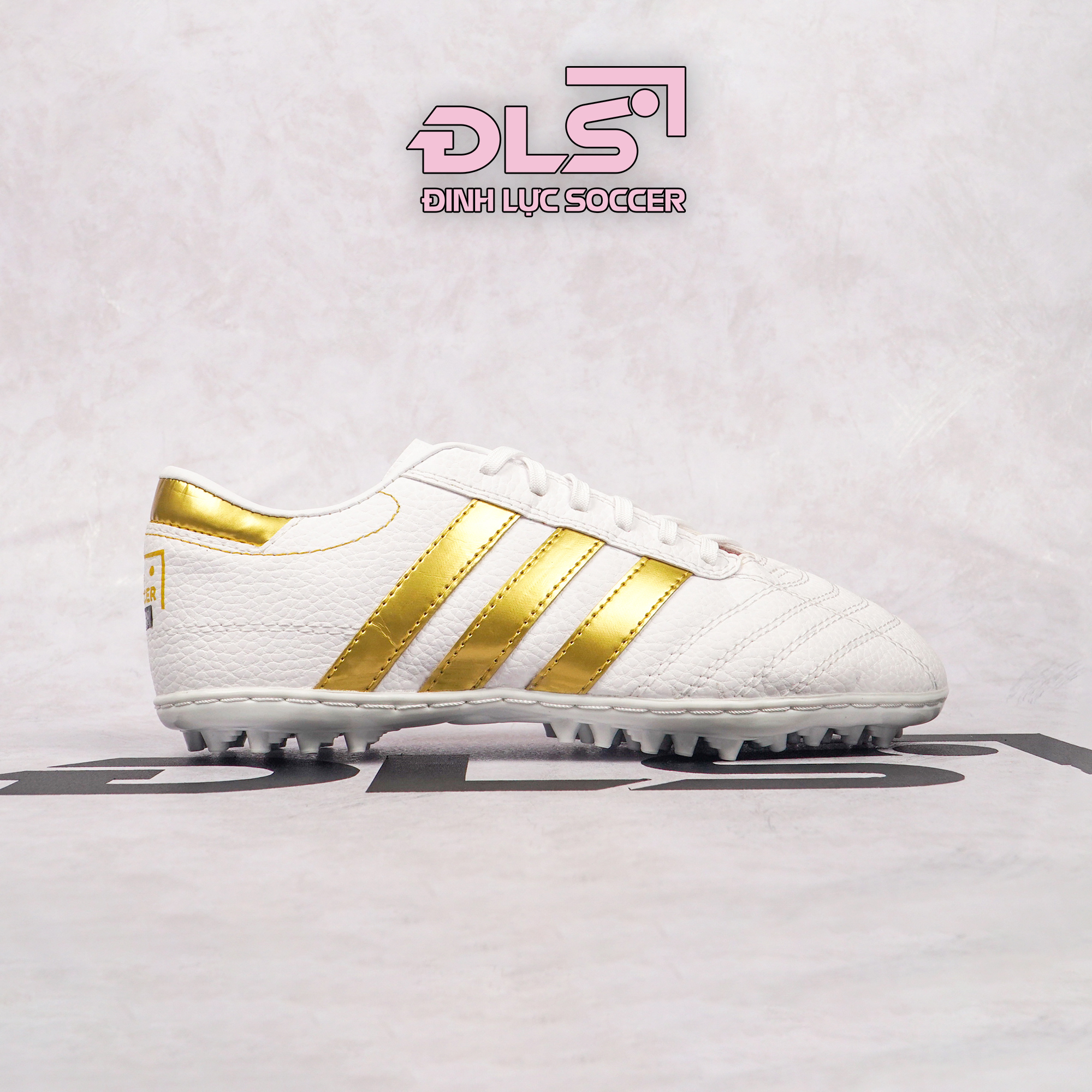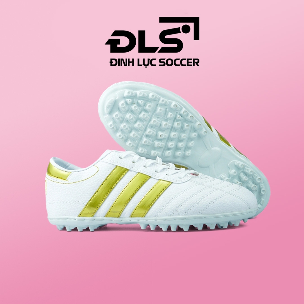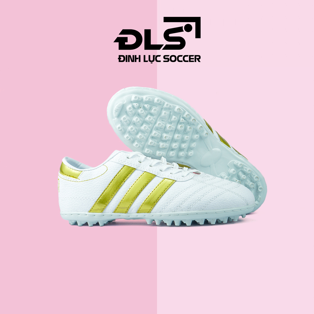 Giày Bóng Đá 3 Sọc Loại 1 ĐINH LỰC SOCCER Trắng Sọc Đồng TF
