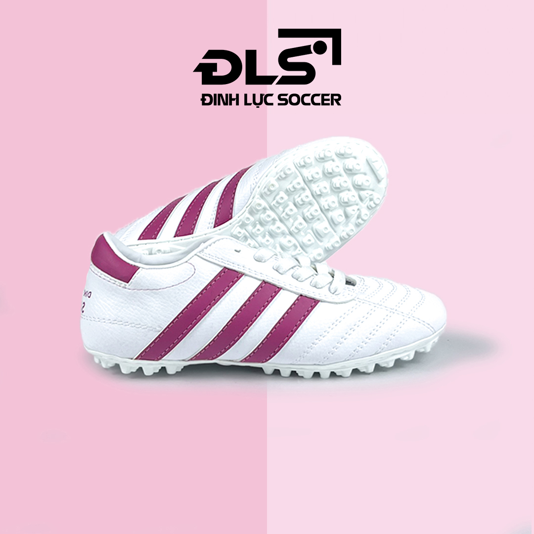 Giày Bóng Đá 3 Sọc Loại 1 ĐINH LỰC SOCCER Trắng Sọc Tím TF