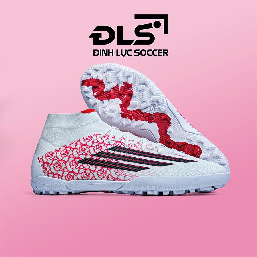 Giày Bóng Đá Adidas F50 Cổ Cao Trắng Hoa Hồng Đỏ TF
