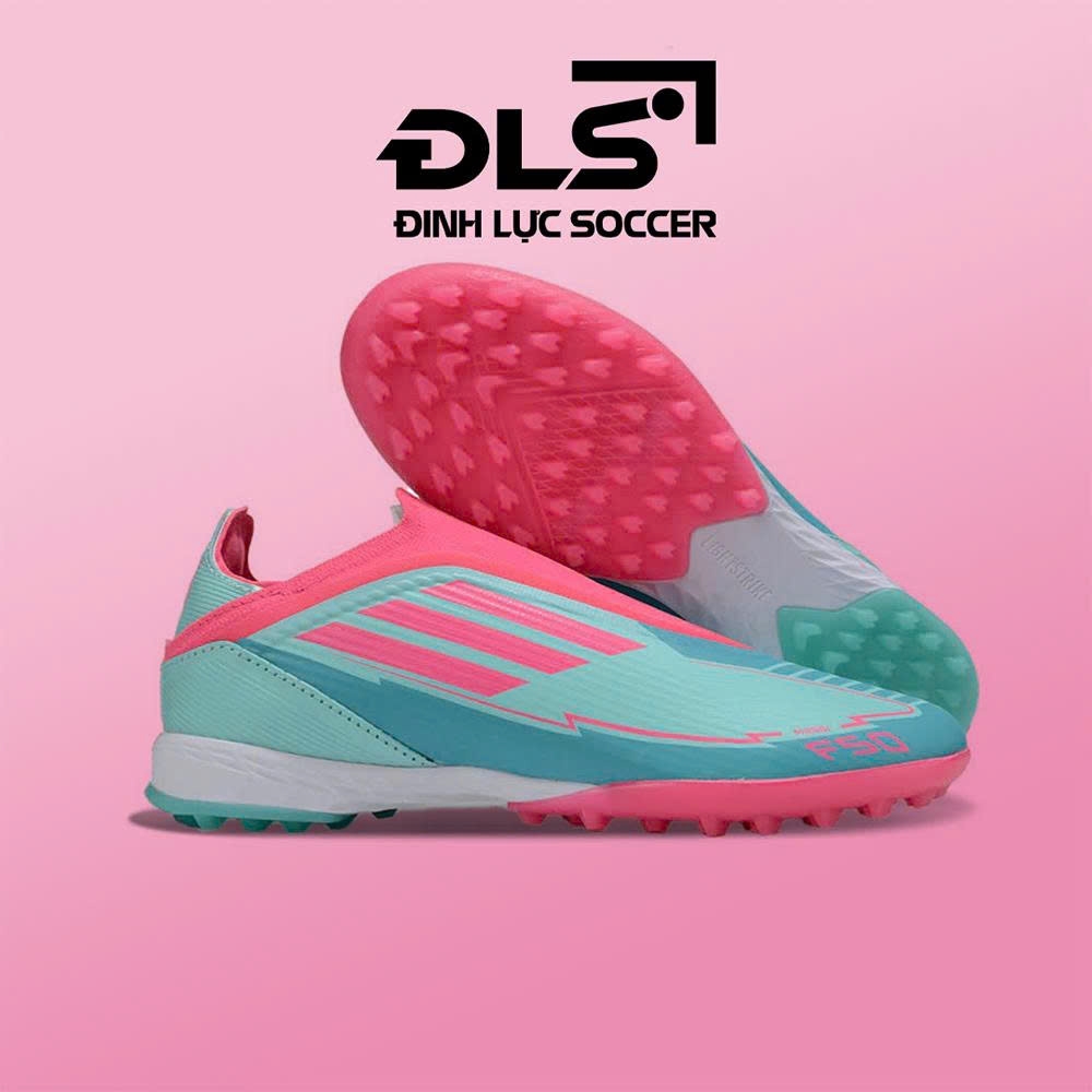 Giày Bóng Đá Adidas F50 Elite Laceless MESSI MIAMI Xanh Ngọc Vạch Hồng Không Dây TF