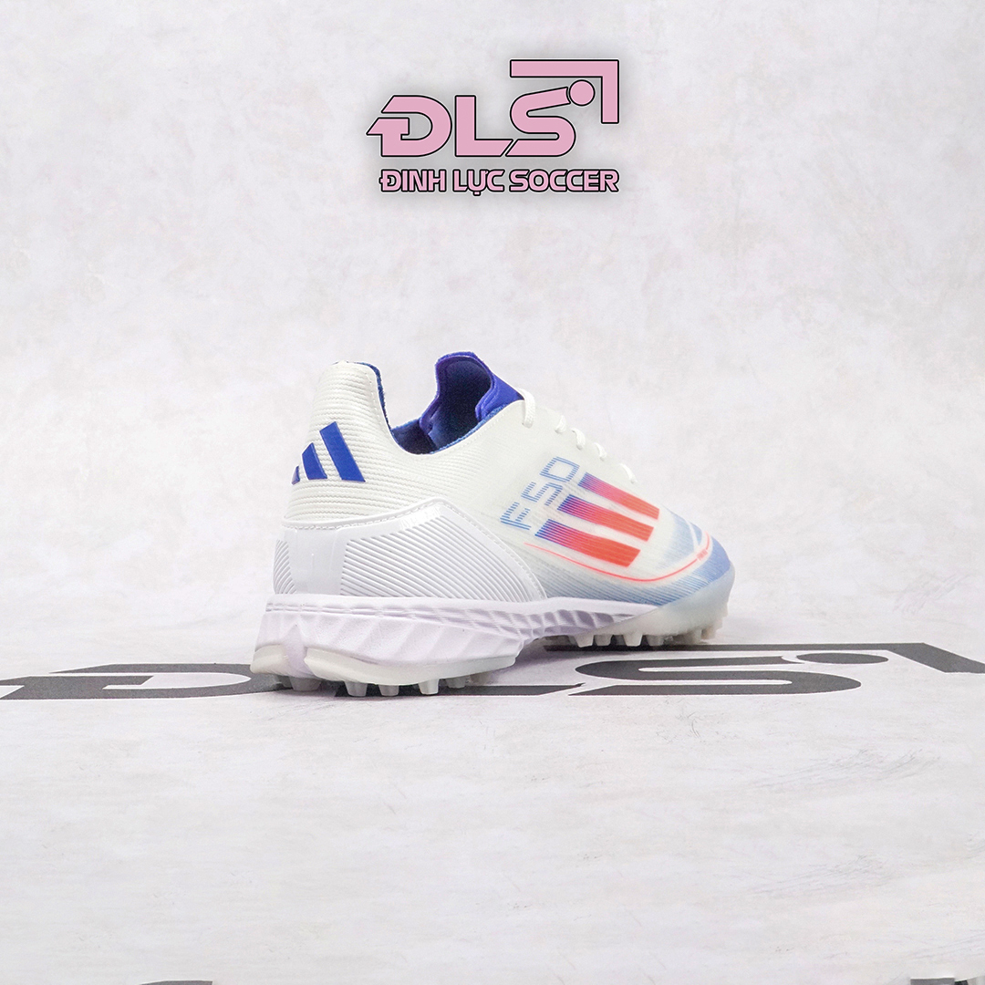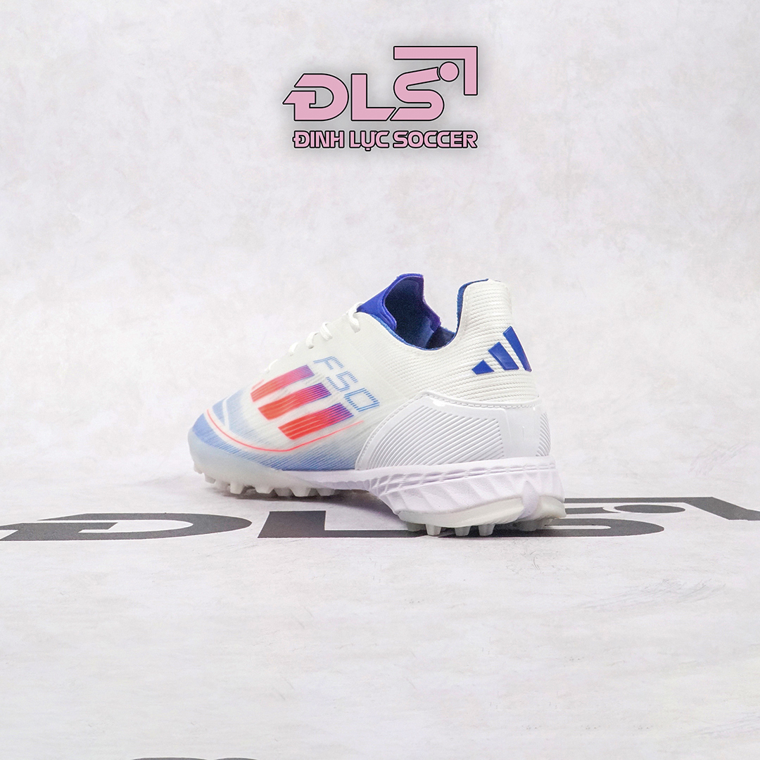 Đế TF chuyên dụng: Đế giày bóng đá Adidas F50 Elite trắng xanh biển vạch đỏ TF được thiết kế dành riêng cho mặt sân cỏ nhân tạo, với các gai nhỏ giúp tăng cường độ bám và giảm thiểu rủi ro trượt ngã, đồng thời duy trì độ bền cao trong suốt quá trình sử dụng.