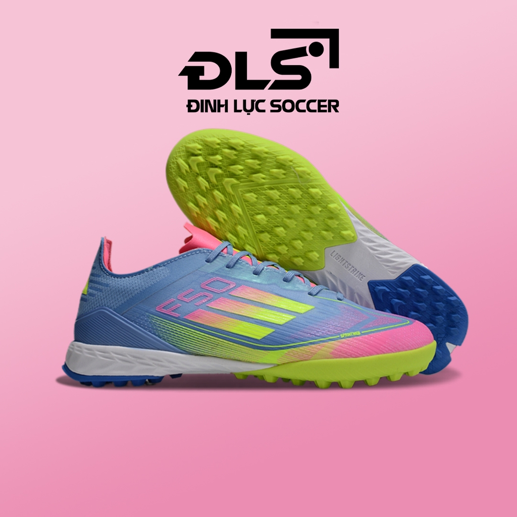 Giày Bóng Đá Adidas F50 Elite Xanh Biển Vạch Chuối Hồng Lưỡi Gà Cố Định TF