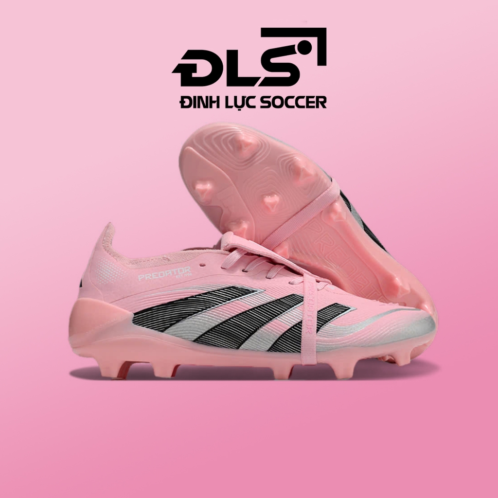 Giày Bóng Đá Adidas Predator 25 Elite Tongue Hồng Xám Vạch Đen HQ FG