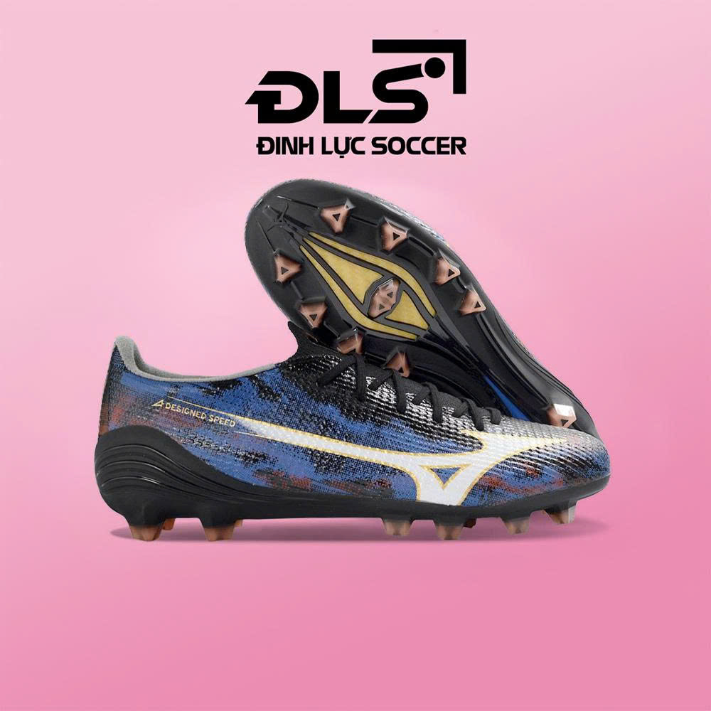 Giày Bóng Đá Mizuno Alpha III Elite Đen Xanh Đỏ Lưỡi Gà Liền FG