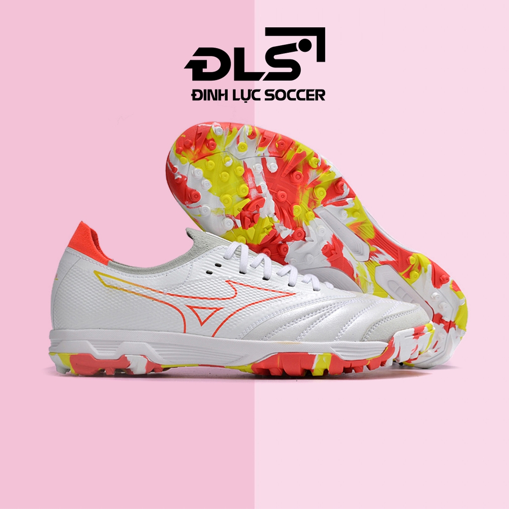 Giày Bóng Đá Mizuno Morelia Neo Sala Beta Trắng Đế Rằn Ri Đỏ Vàng TF