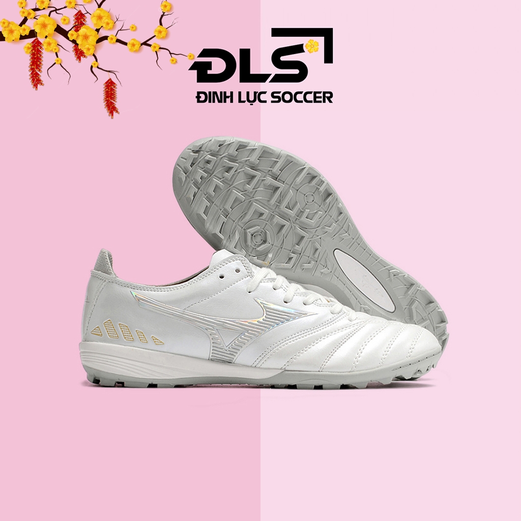 Giày Bóng Đá Mizuno Neo 3 Trắng Bạc Gót Vàng TF