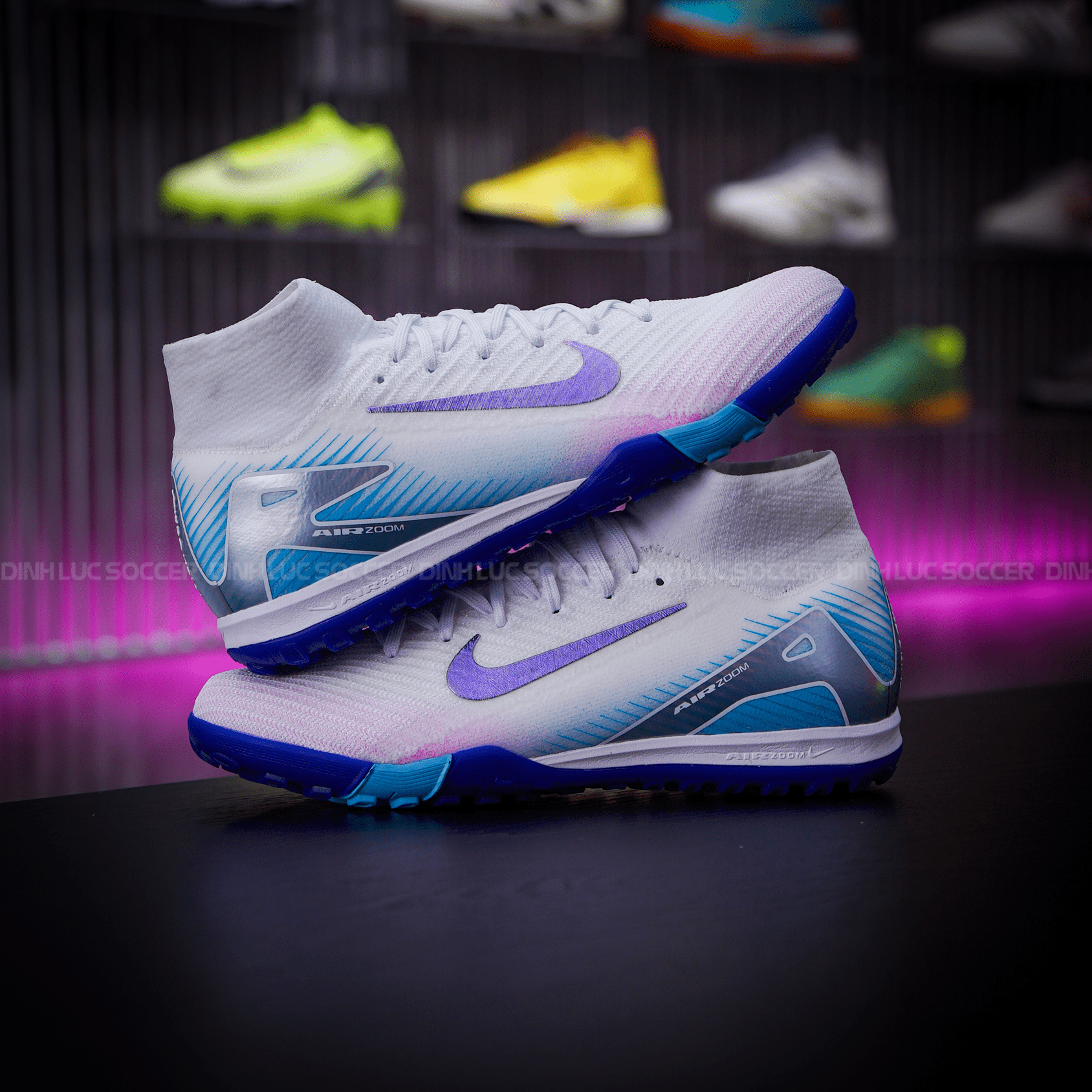 Giày Bóng Đá Nike Mercurial Superfly 10 Elite Trắng Xanh Hologram Cổ Cao TF