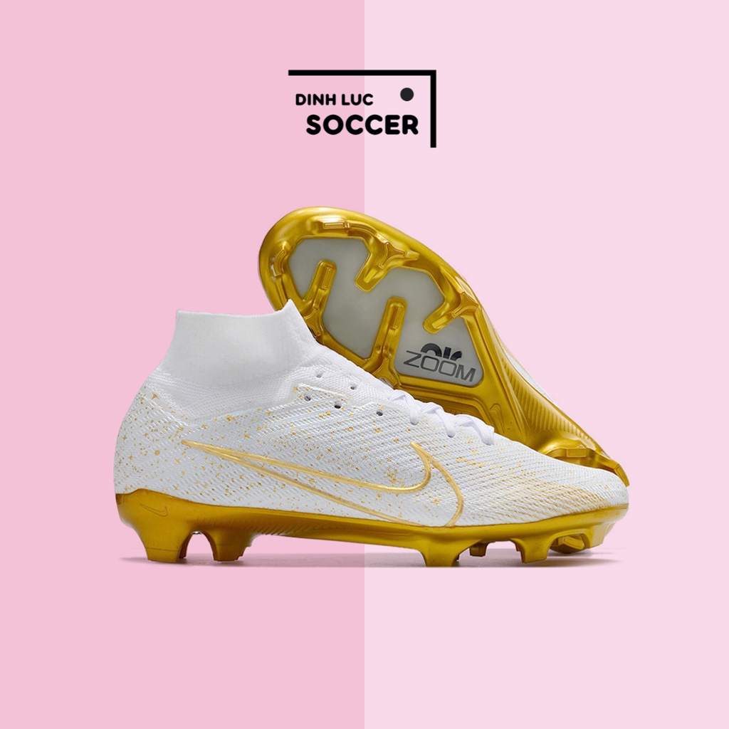 Giày Bóng Đá Nike Mercurial Superfly 9 Elite Trắng Vạch Vàng Đế Vàng FG