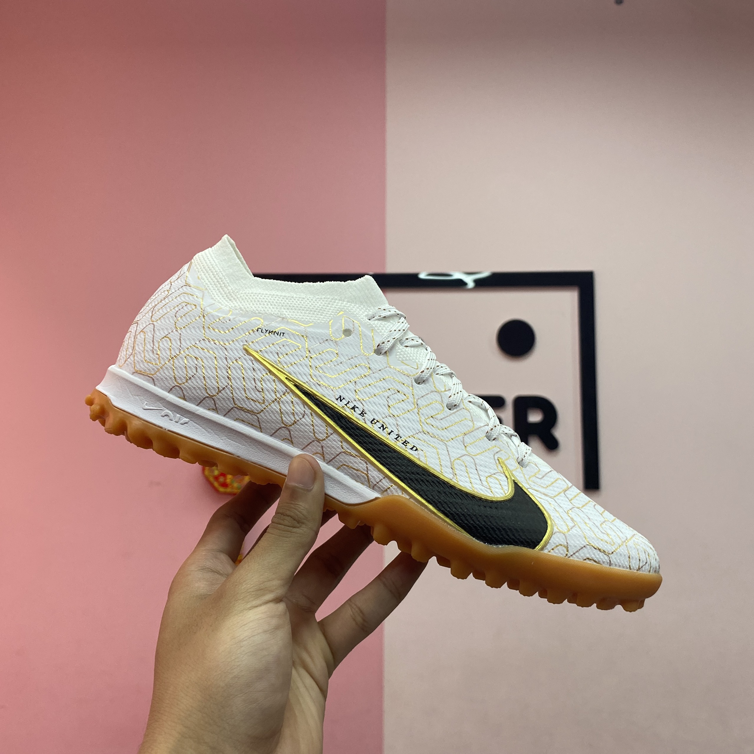 Giày Bóng Đá Nike Mercurial Vapor 15 Elite United Trắng Vạch Đen Cổ Lửng TF