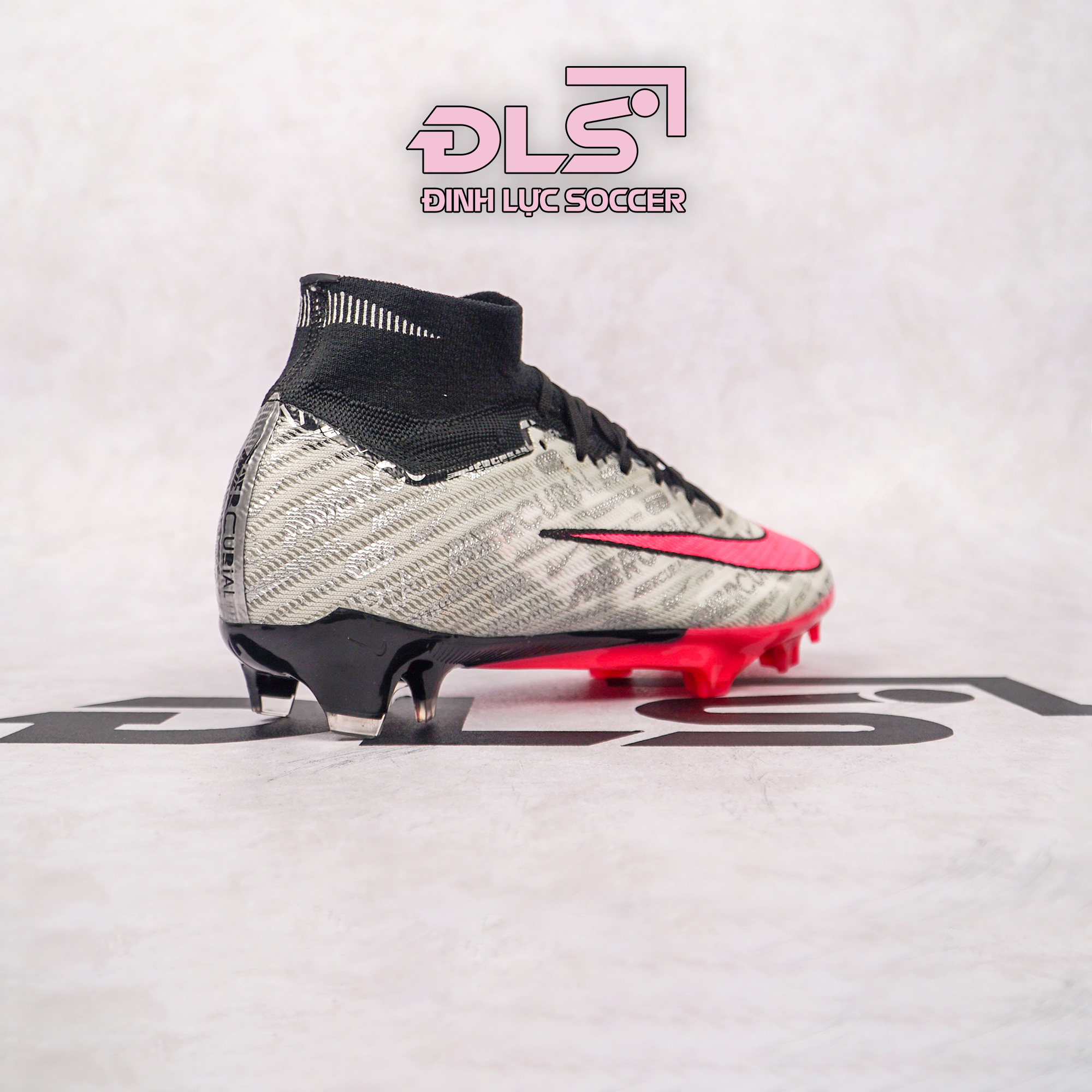 Giày Bóng Đá Nike Superfly 9 Elite Bạc Vạch Hồng Cổ Cao FG