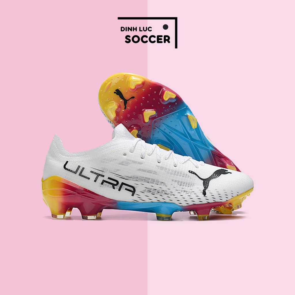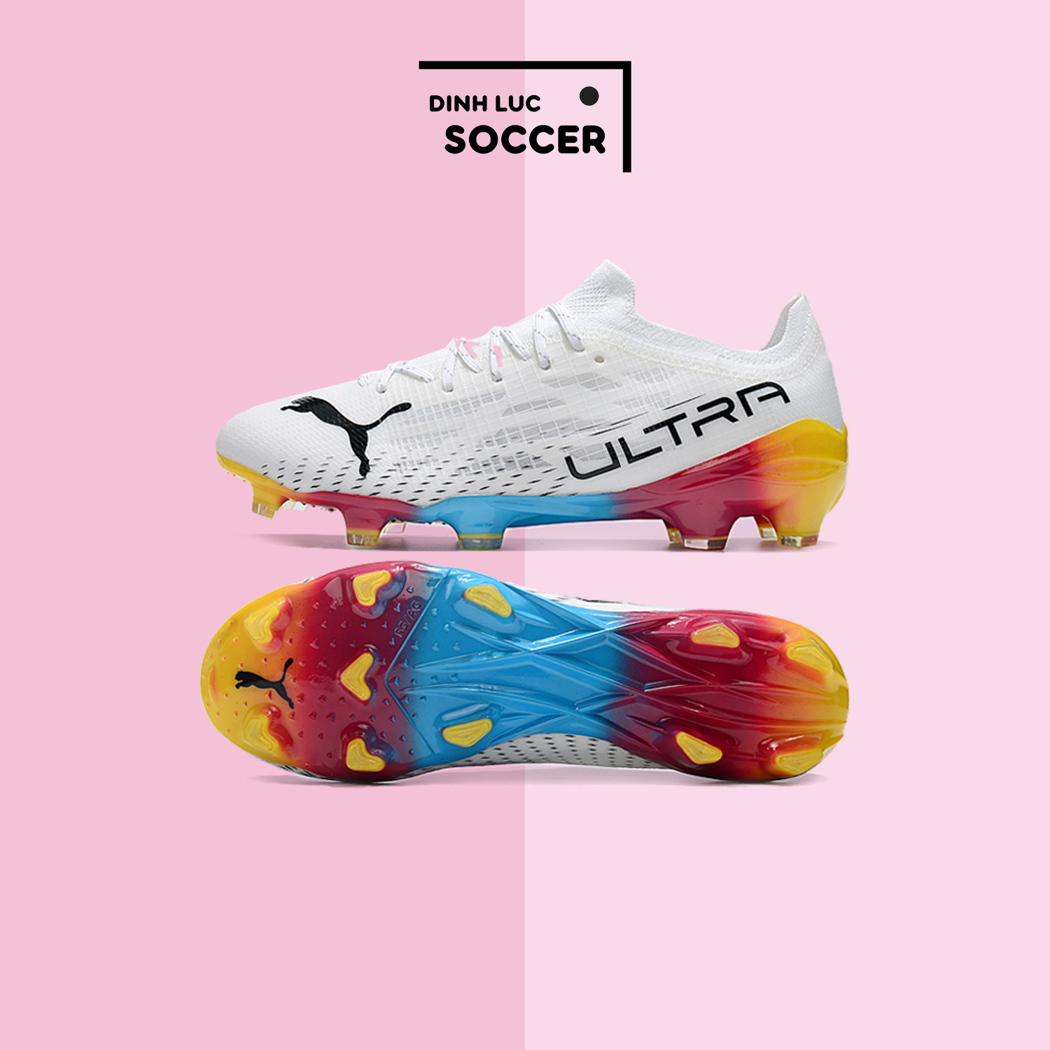 Giày Bóng Đá SF Puma Ultra Trắng Đế Xanh Biển Đỏ Vàng FG