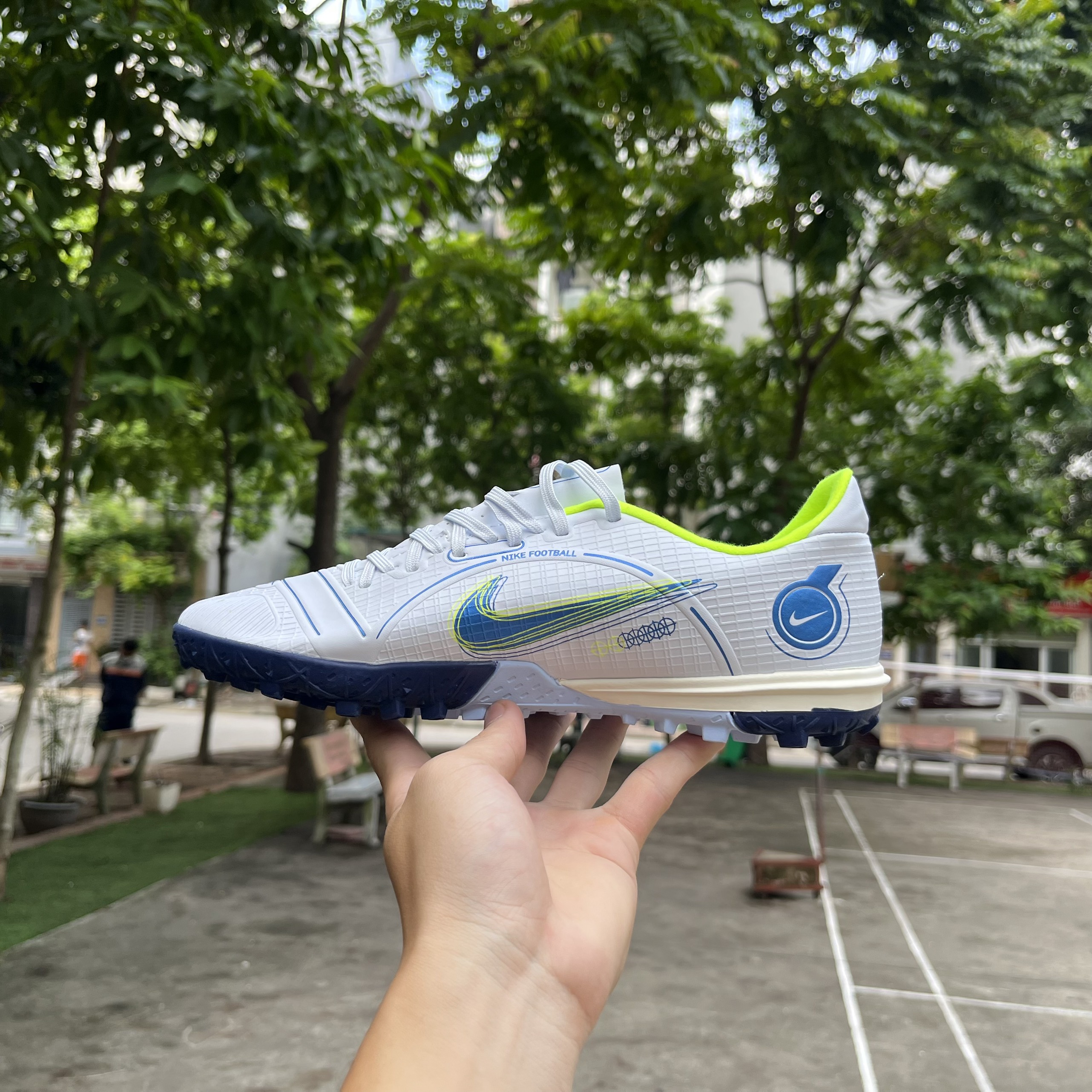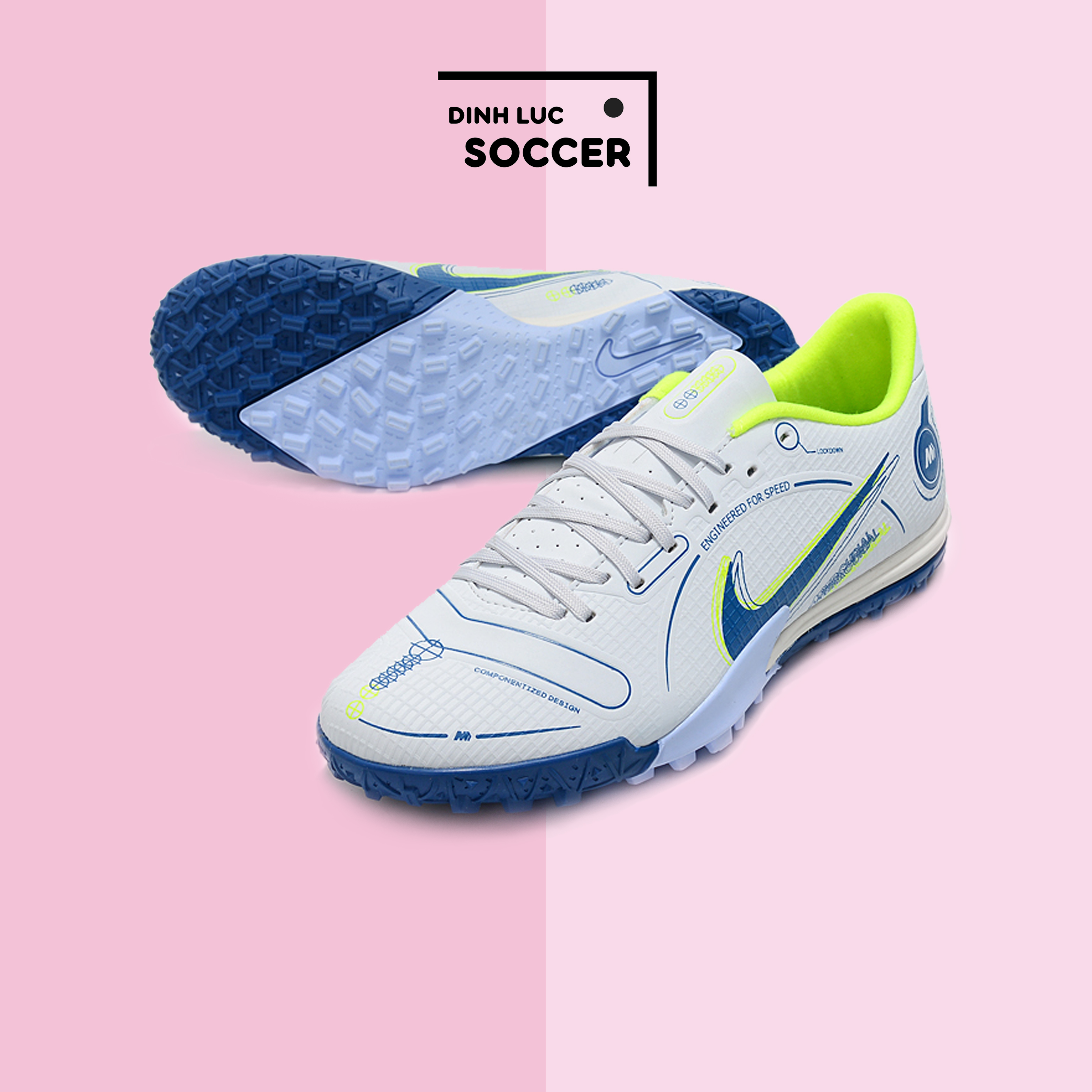 Giày Bóng Đá SF Nike Mercurial Vapor 14 Academy Trắng Xám Vạch Xanh TF
