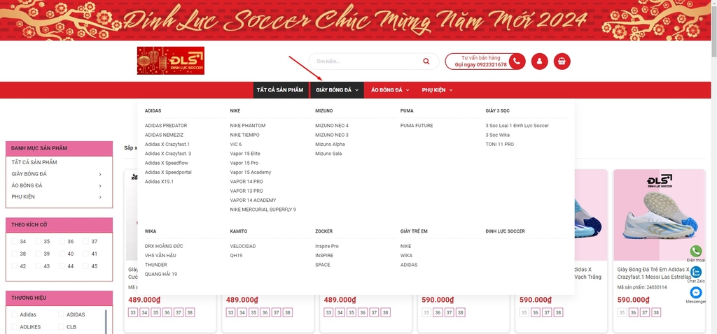 CÁCH 1: Gọi Hotline: 0922.321.678 từ 8h30 đến 22h tất cả các ngày trong tuần để đặt hàng ngay. Nhân viên của Đinh Lực Soccer sẽ ghi nhận thông tin đặt hàng của bạn.