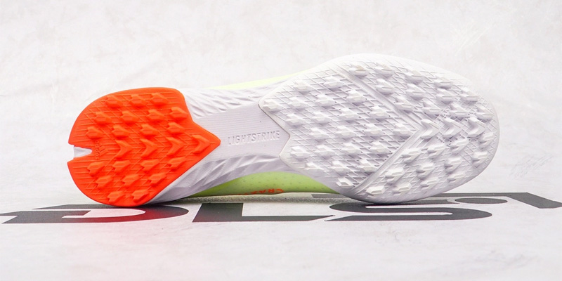 Một trong những điểm mạnh của đế giày là phần đế trước được thiết kế với độ cứng vừa phải. Điều này cho phép người chơi cảm nhận được sự hỗ trợ tối ưu từ phần đế khi bứt tốc bằng các đầu ngón chân. Nhờ thiết kế này, đôi giày mang đến một trải nghiệm chạy “bùng nổ” hơn, giúp tăng cường tốc độ và sự linh hoạt trên sân. So với các mẫu giày tốc độ của Nike hay PUMA, Adidas X nổi bật với cảm giác hỗ trợ lực mạnh mẽ từ đế, góp phần nâng cao hiệu suất và sự tự tin của người chơi trong các pha tăng tốc và di chuyển nhanh.